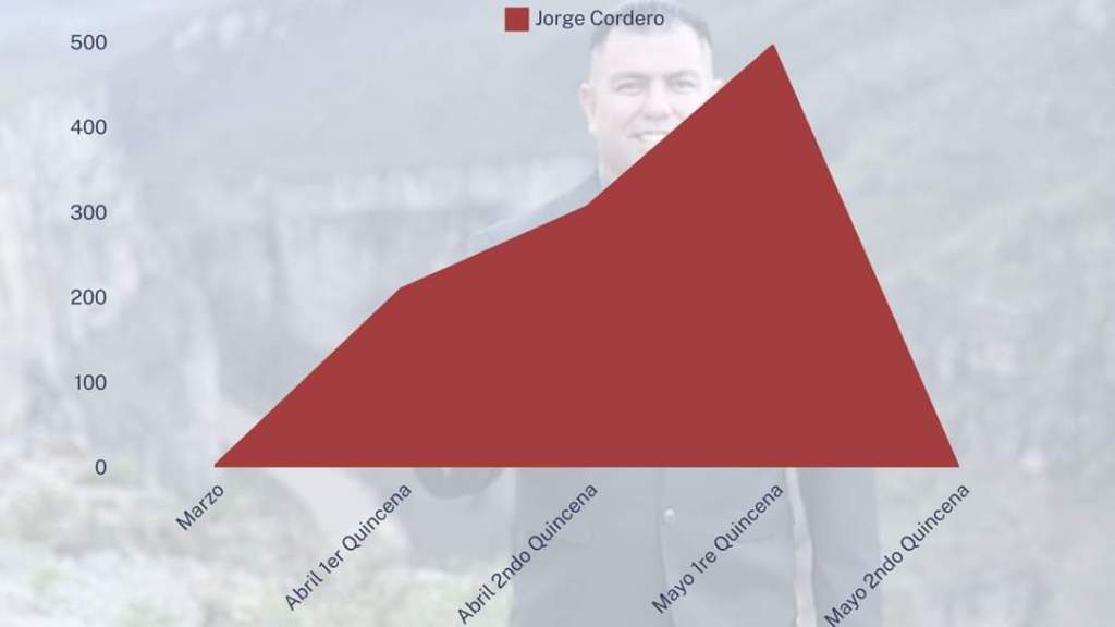 El TERCER LUGAR en esta contienda, el candidato de MORENA C. Jorge Cordero, quien se ha visto muy poco en redes y se ha dedicado a implementar otra estrategia, que es solo recorrer las calles, cosa o acto que no le funcionó, pues fue superado en aceptación por la candidata del PAN.