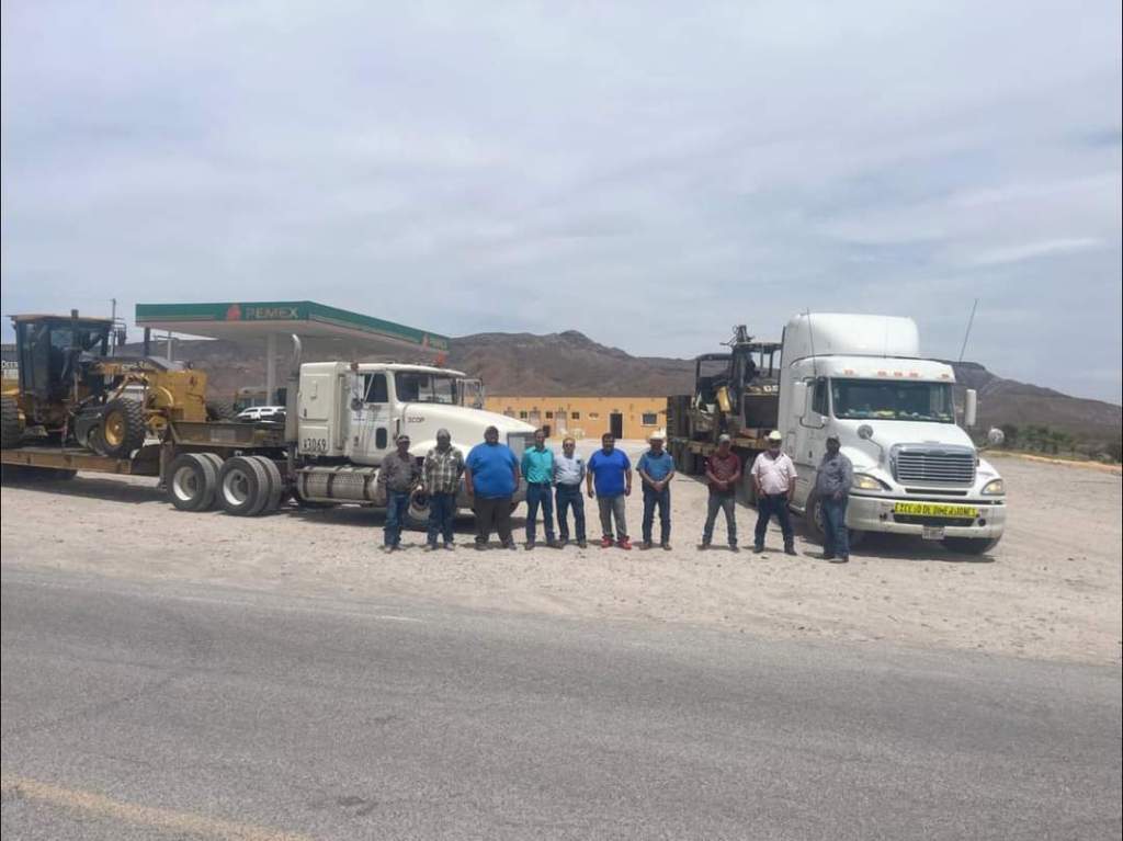 Sigue llagando maquinaria de Obras Públicas de Gobierno del Estado a Manuel Benavides para continuar con el proyecto de revestimiento de camino entre Paso de San Antonio y la Cabecera Municipal; Los trabajos darán inicio este jueves y beneficiarán a las comunidades que se encuentran al sur del municipio. La maquinaria consta de vibrocompactador, motoconformadora, retroescabadora, dompe y pipa sistema.