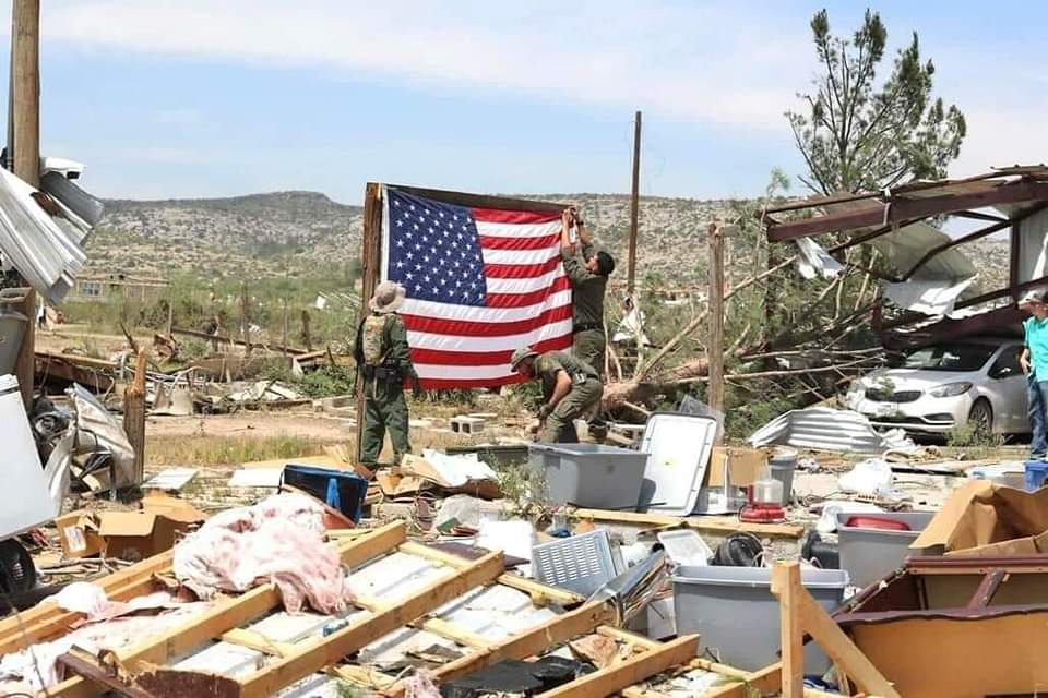 SANDERSON, TEXAS. -Varios agentes de la Patrulla Fronteriza de EE. UU. del sector Big Bend continúan apoyando los esfuerzos de recuperación en Sanderson, TX, después de que un tornado devastó la pequeña comunidad. Los agentes de USBP están apoyando a agentes y miembros de la comunidad que perdieron sus hogares en la tormenta.