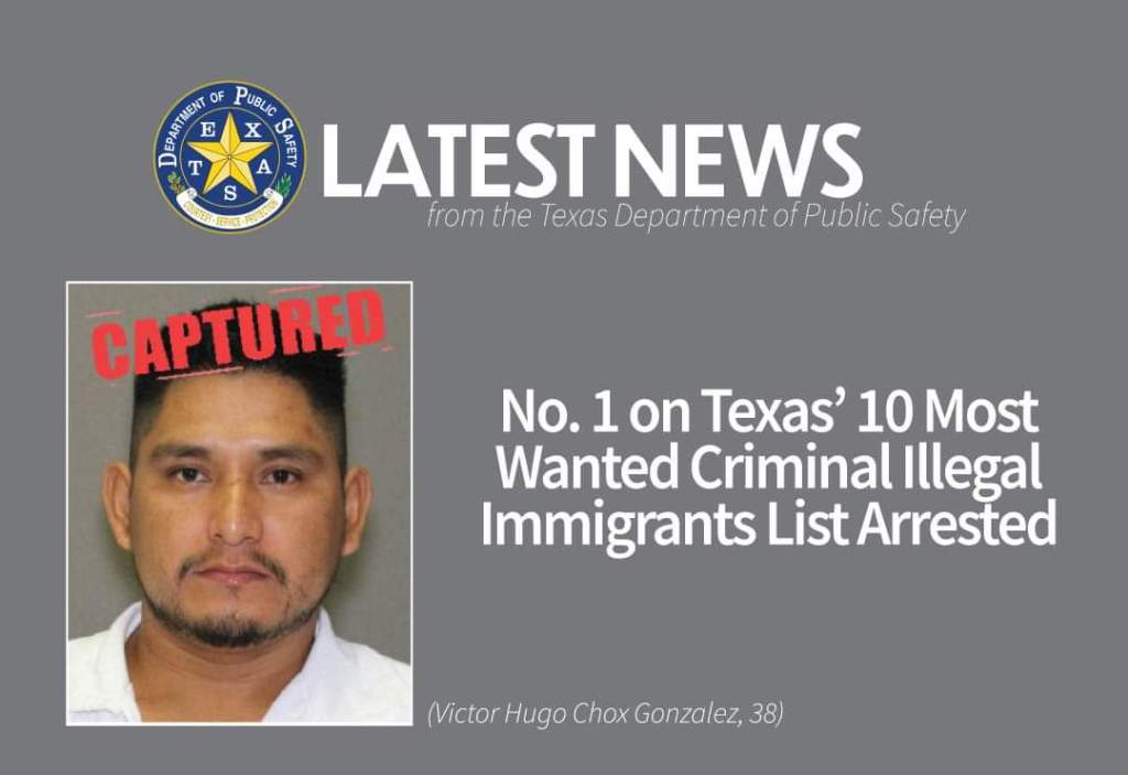 AUSTIN.- Poco más de una semana después de que el gobernador Greg Abbott difundió la lista de los 10 inmigrantes ilegales criminales más buscados de Texas, el Departamento de Seguridad Pública de Texas (DPS) ha capturado al fugitivo más buscado de esa lista.