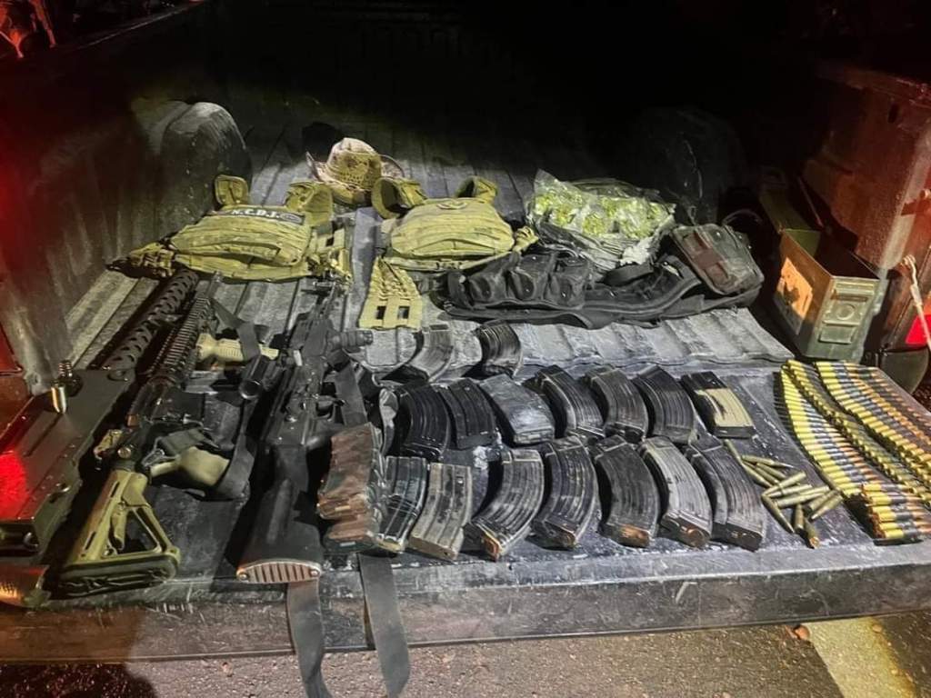 GUARDIA NACIONAL ASEGURA VEHICULOS, DROGA Y ARMAS EN JIMENEZ En el municipio de Jiménez, #Chihuahua, la #GuardiaNacional y el #EjércitoMexicano, aseguraron dos camionetas abandonadas en cuyo interior se localizaron armas largas, cargadores, cartuchos útiles, una cinta eslabonada para ametralladora, así como dosis de aparente marihuana.