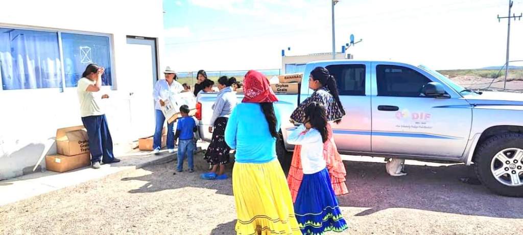 Ojinaga, Chih.- La presidenta del DIF Municipal la Sra. Elsa Gómez de Ramos acudió a el Albergue de El Oasis a hacer entrega de ropa, zapatos, sábanas, cobijas, así como diversos artículos para aseo personal y ayudar a las familias de tarahumaras que viven en esa comunidad.