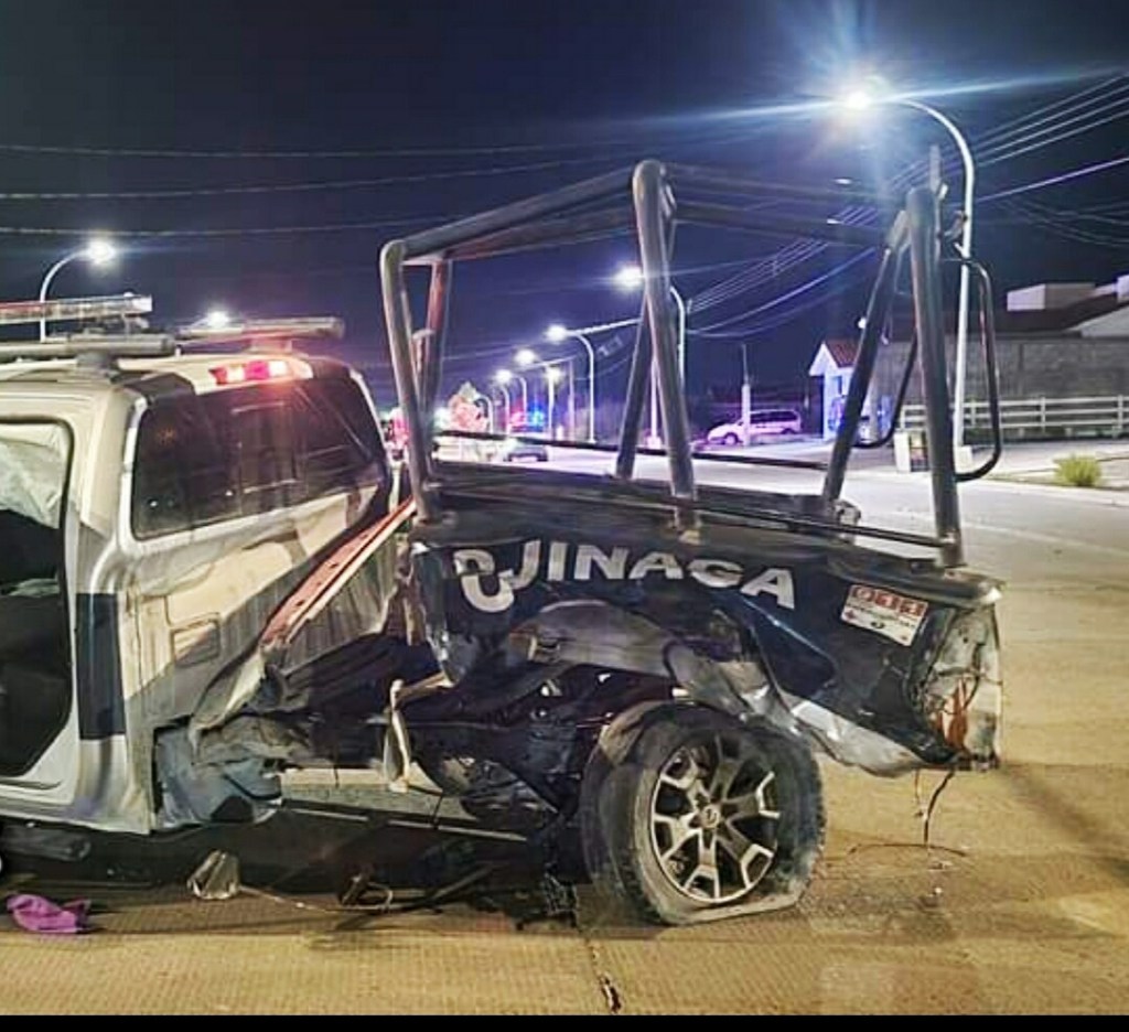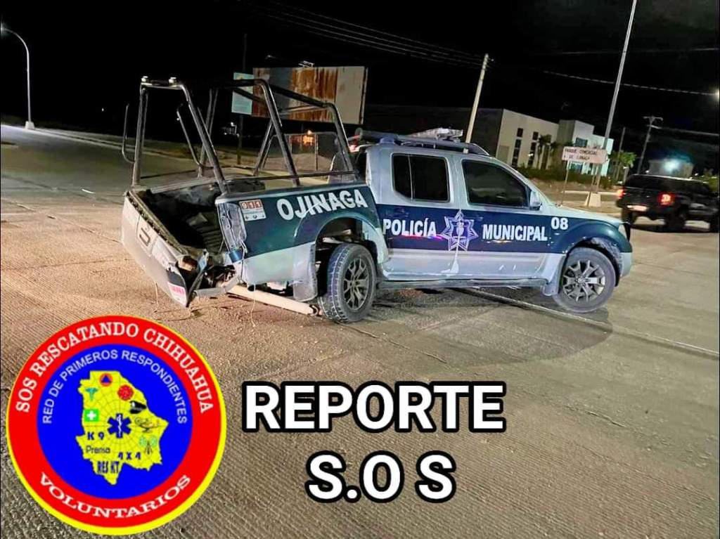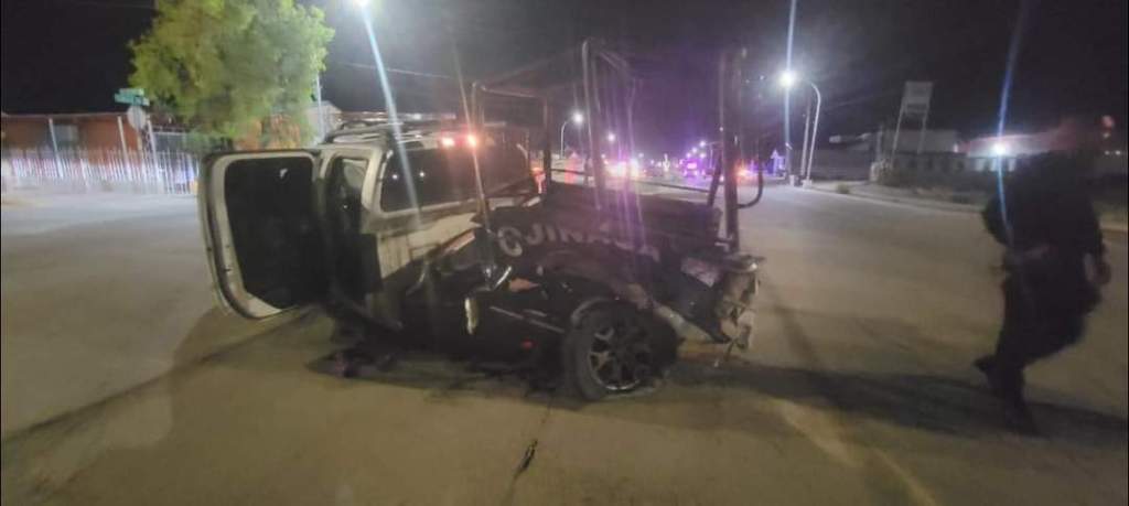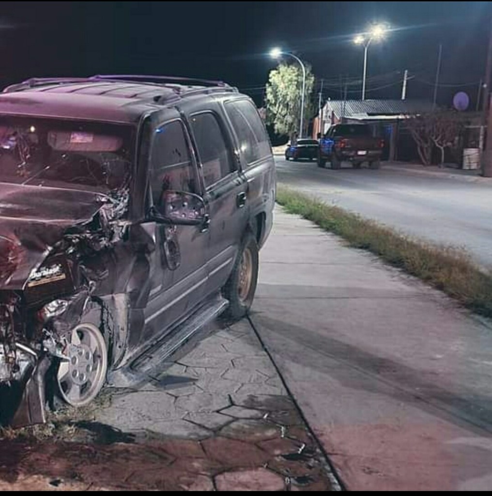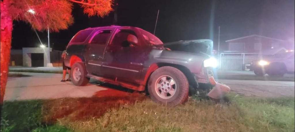 Cuando al parecer un vehiculo tipo Tahoe color gris circulaba a exceso de velocidad y al llegar al crucero impacto una unidad de seguridad pública en donde dos agentes policiacos resultaron con lesiones de consideración, mientras el conductor del vehículo responsable también resultó lesionado.