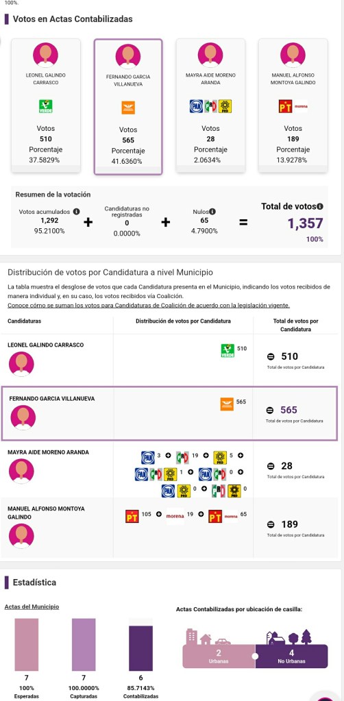 EN LAS PASADAS ELECCIONES DEL 2 DE JUNIO EL ACTUAL ALCALDE FERNANDO GARCÍA VILLANUEVA SE ALZÓ CON LA VICTORIA CON MAS DE 50 VOTOS DE DIFERENCIA. HOY, EL CANDIDATO DEL PARTIDO VERDE QUIERE ARREBATARLE SU TRIUNFO EN LOS TRIBUNALES CON ARGUMENTOS INFANTILES INFUNDADOS.