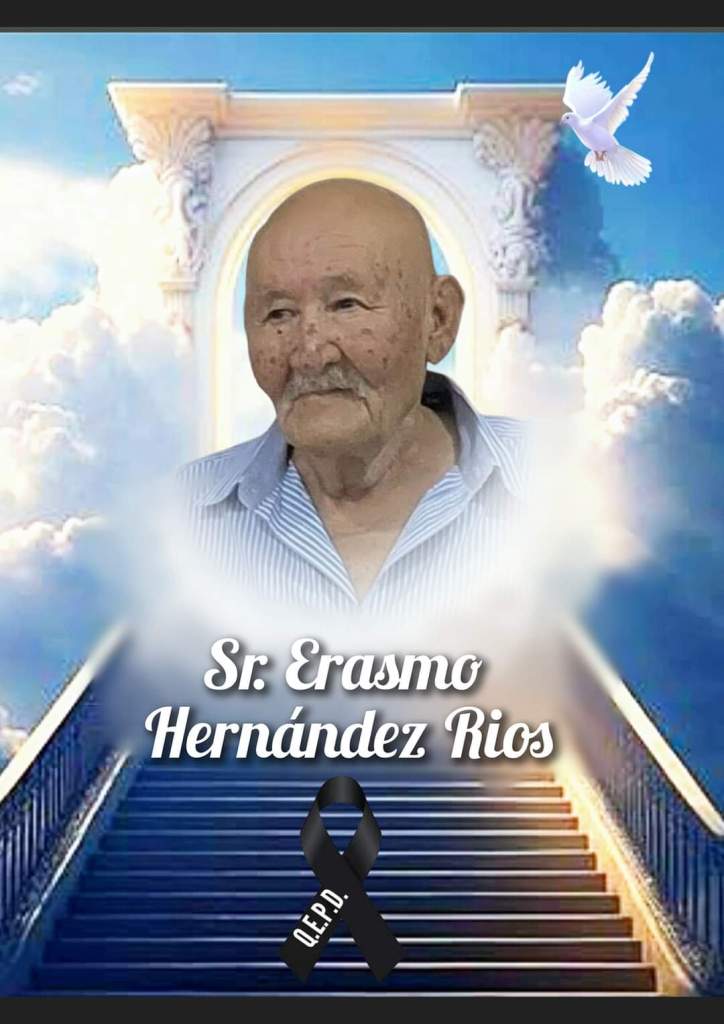 A familiares y amistades del Sr Erasmo Hernandez Rios, se les comunica de su sensible fallecimiento este 27 de Agosto 2024, a la edad de 83 años. Después se estará avisano donde sera velado y la hora y fecha de sus funerales.