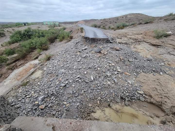 De igual manera en los tramos carreteros uno de los más afectados la carretera Ojinaga Camargo en su tramo de la mula al entronque y a la altura del ejido quibira en dónde la gran cantidad de agua incrementó los cauces de los arroyos que sobrepasaron la cinta asfáltica de la carretera bloqueando el tráfico de vehículos.