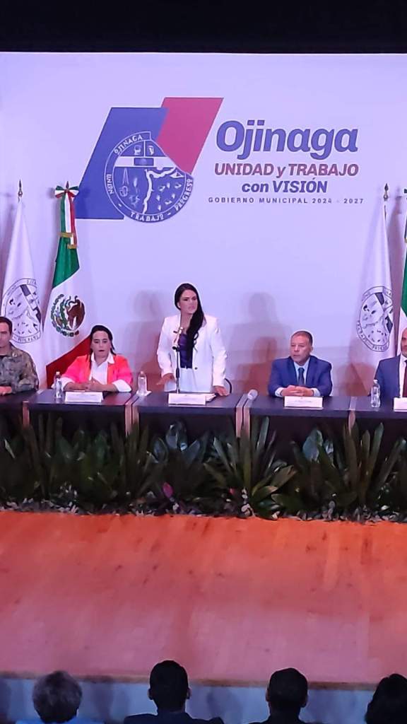 Recordó como siendo una niña en su comunidad de «El Divisadero», corría por las asequias de la mano de sus padres, y quebrándosele la voz, apunto que se propuso dos cosas, formar una familia y construir un hogar, además servirle a su gente y servirle a Ojinaga y hoy que asume la presidencia de Ojinaga quisiera regresar el tiempo y decirle a esa niña que «lo hemos logrado».