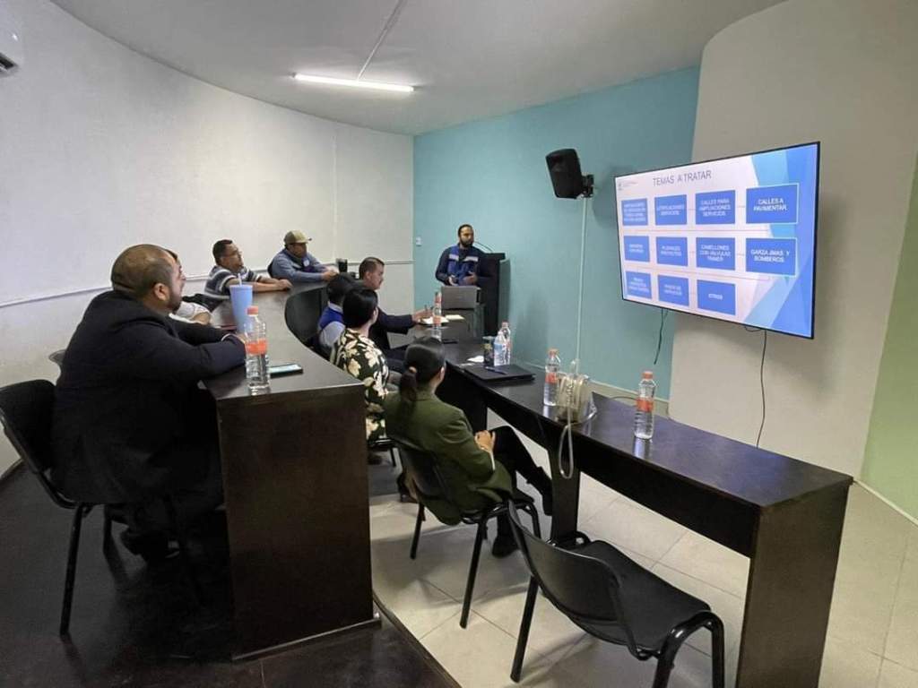 La Presidenta Lucy Marrufo sostuvo reunión de coordinación y trabajo en equipo con el Director Ejecutivo de la JMAS Ojinaga Ing. Alonso Pérez. Acudieron acompañando a la Alcaldesa, la Directora Fernanda Parra de Des. Urbano y Ecología y el Director Víctor Amador de Obras Públicas Municipales. Parte importante del encuentro interinstitucional giró en torno a los proyectos conjuntos que habrán de desarrollarse y los canales de comunicación permanente a favor de las familias ojinaguenses, reflejados en proyectos de calles en buen estado y una imagen funcional de la ciudad y comunidades rurales.