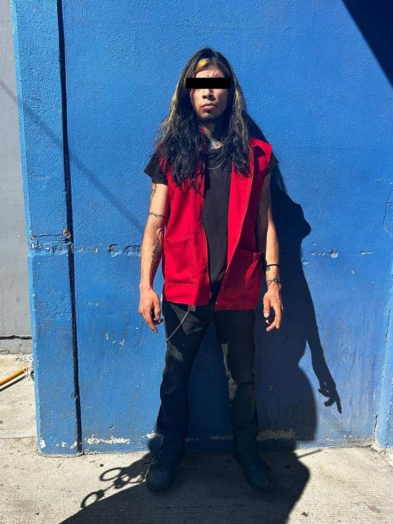 Cuando los agentes realizaban recorridos de prevención y vigilancia observaron a un hombre de tez clara, complexión delgada, estatura aproximada 1,65 metros y cabello largo que vestía un pantalón de mezclilla color negro, playera negra, chaleco rojo y calzado tenis en color negros.