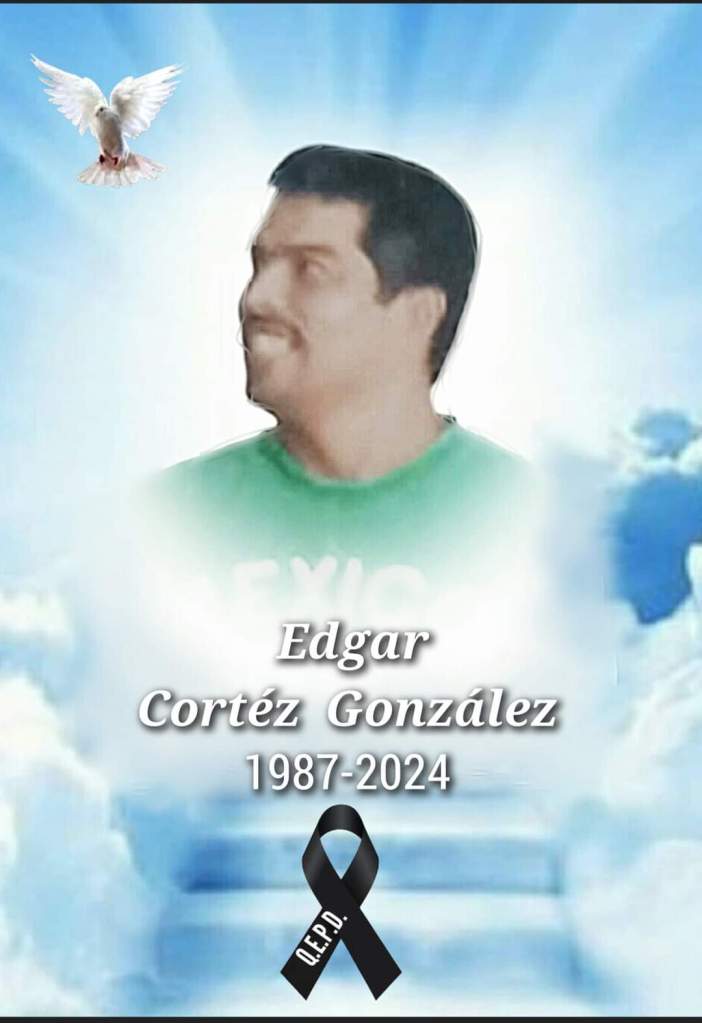 A familiares y amistades de Edgar Cortéz González, se les comunica su sensible fallecimiento a la edad de 37 años. Es velado en el templo Gestsemaní hasta las 12 de la noche, este miércoles a partir de las 9 de la mañana y a las 3pm se oficiará un servicio religioso en el mismo templo; Los servicios funerarios serán a las 5pm en el panteón colinas del edén.