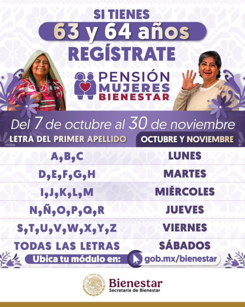La Pensión Bienestar para mujeres de 60 a 64 años iniciará con las fechas de registro para que las beneficiarias puedan recibir los apoyos a partir de enero del 2025.