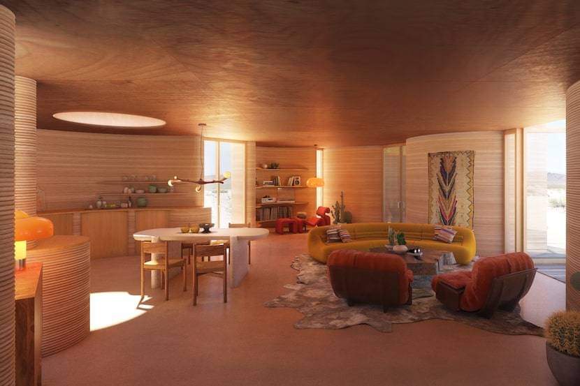 Es el primer hotel impreso en 3D en el mundo, dicen la propietaria de El Cosmico, Liz Lambert, y sus socios en el proyecto, ICON, una compañía de impresión en 3D con sede en Austin, Texas y la firma de arquitectura Bjarke Ingels Group.