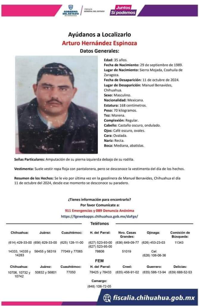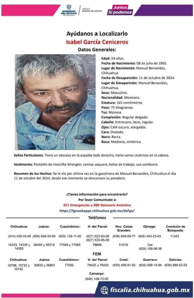 ESTATAL,GENERAL,REGIONAL CONTINUA LA BUSQUEDA DE TRES MASCULINOS DESAPARECIDOS EN MANUEL BENAVIDES⚠️ Imagen 16 de octubre de 2024 mone1970 Deja un comentario Se solicita el apoyo de la ciudadanía y medios de comunicación para localizarlos. Fiscalía Comparte esto: Compartir en X (Se abre en una ventana nueva) X Comparte en Facebook (Se abre en una ventana nueva) Facebook Compartir en WhatsApp (Se abre en una ventana nueva) WhatsApp Compartir en Threads (Se abre en una ventana nueva) Threads Compartir en X (Se abre en una ventana nueva) X Relacionado