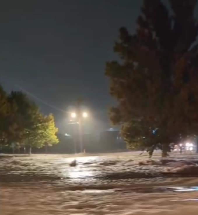El Servicio Meteorológico Nacional en Albuquerque pide a todos que se mantengan alejados de las áreas inundadas en el condado de Ch «Una emergencia de inundaciones repentinas está ahora en efecto para el área de Roswell. Entre 4 y 7 pulgadas de lluvia ya han caído. Se espera que otras tormentas se vuelvan a desarrollar y se muevan sobre la zona. ¡Por favor, evita las carreteras inundadas.