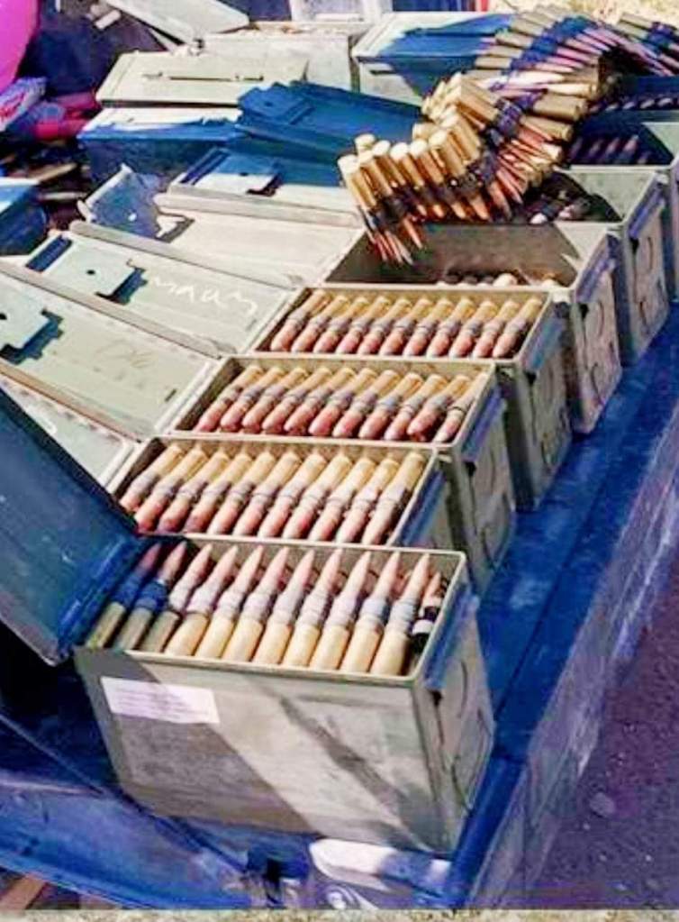 En la unidad había una gran cantidad de cartuchos en cajas metálicas, en carrilleras para ser disparadas con ametralladoras.