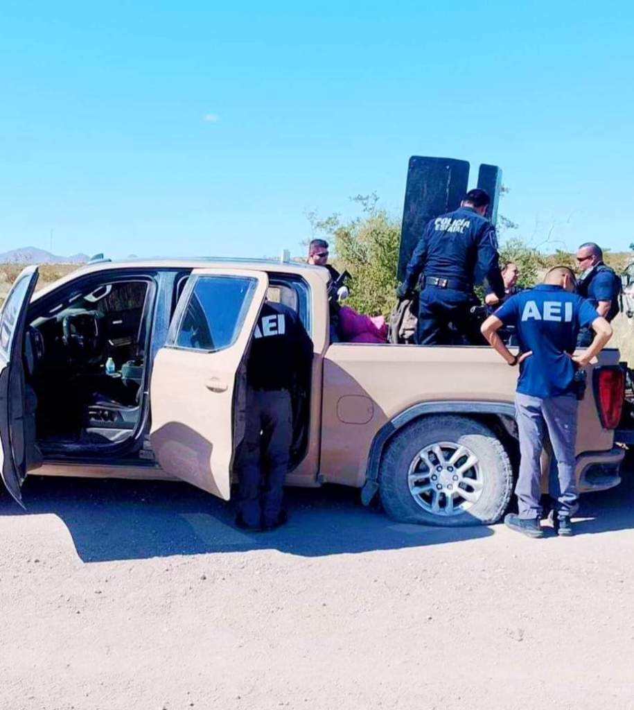 Por el momento trasciende que entre los vehículos localizados se encuentra una troca de reciente modelo, marca GMC, línea Sierra, acondicionada con un escudo de acero montado en la caja, para protegerse y hacer disparos.