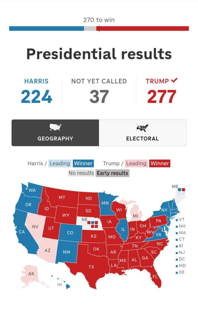 El candidato republicano Donald Trump superó los 270 votos necesarios del Colegio Electoral para ser el nuevo presidente de EE. UU. para el periodo 2025-2029; entrará en funciones el próximo lunes 20 de enero, fecha en que se celebra el Día de la Inauguración Presidencial en la Casa Blanca.