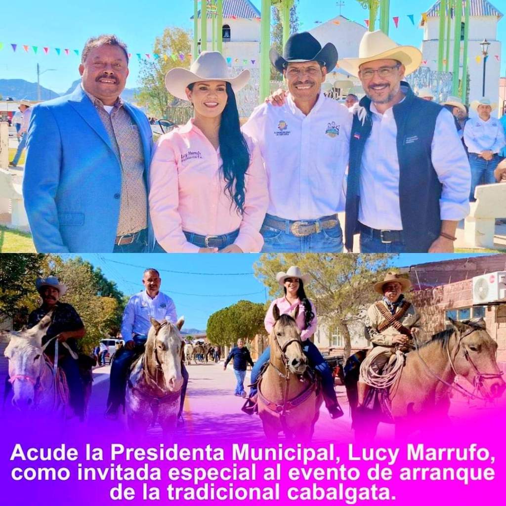 La Alcaldesa Municipal, Lucy Marrufo, acudió como invitada especial al arranque de la tradicional cabalgata en conmemoración de la Revolución Mexicana, evento que se celebró el, 14 de noviembre de 2024, en la comunidad de Cuchillo Parado.