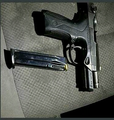 Durante la inspección del vehículo, los oficiales encontraron un arma de fuego tipo Beretta calibre 9 mm, además de un cargador con 14 cartuchos útiles.
