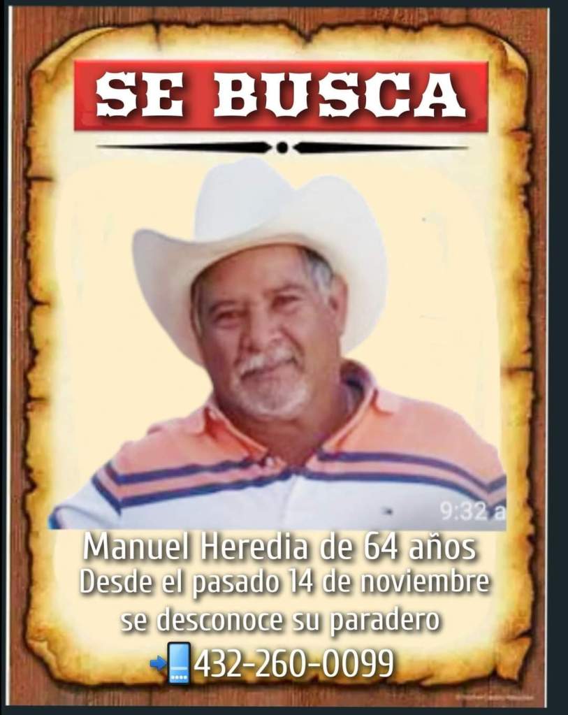 Su nombre es Manuel Heredia de Ojinaga, tiene 64 años y desde el pasado 14 de noviembre se desconoce su paradero.