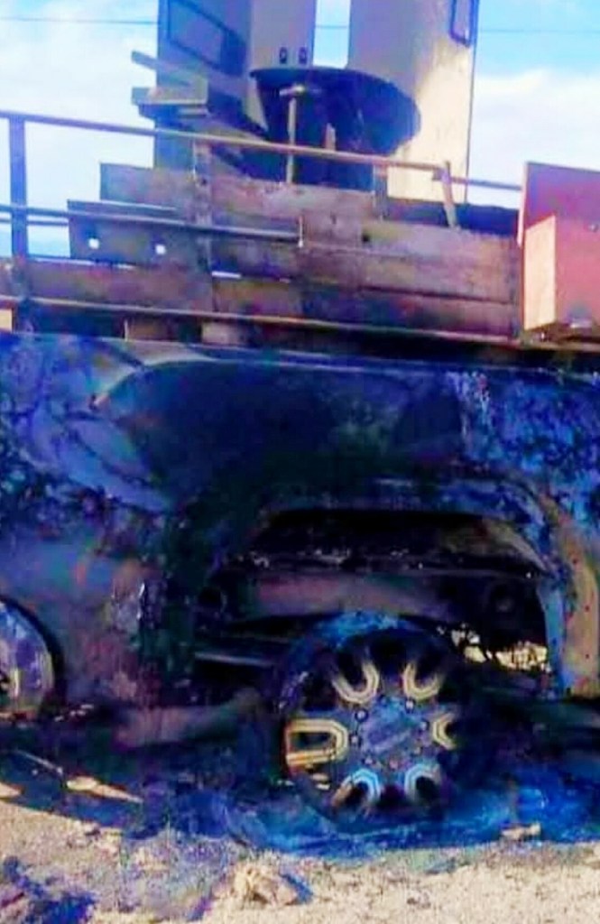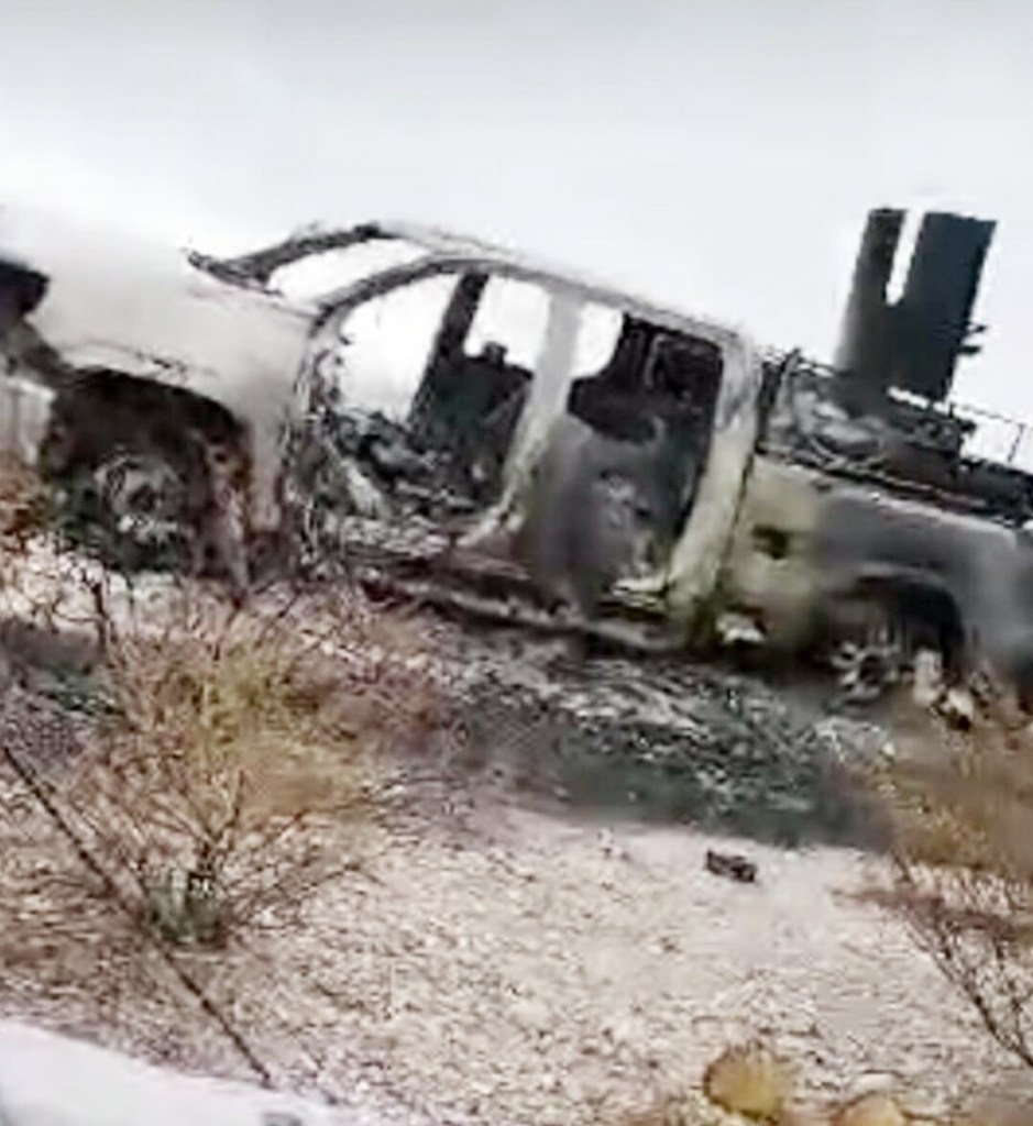 La policía, soldados y Guardia Nacional montaron un operativo y hoy se da a conocer que fueron localizadas al menos dos unidades calcinadas, una de las cuales tiene instalada en la caja una base para empotrar un fusil, así como una placa protectora de acero para el tirador. Por el momento las autoridades no han dado mayor información, ya que continúan realizando recorridos.