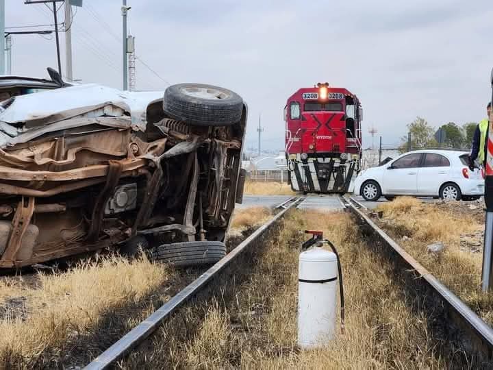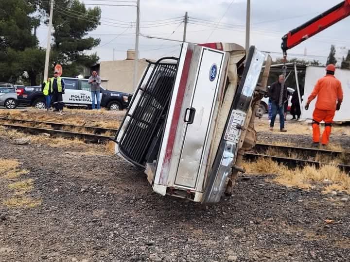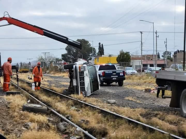 Chihuahua, Chih.- El conductor de una camioneta Ford pickup blanca, modelo atrasado, intentó ganarle el paso a una locomotora marcada con el numeral 3208, pero fue impactado de costado, lo que provocó que el vehículo volcara.