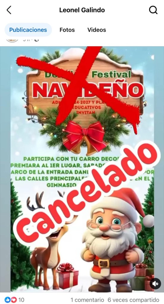 Asimismo, se dio a conocer de manera extraoficial que, los desfiles por la época navideña que se tenían programados en dicho municipio fueron suspendidos por seguridad de los habitantes.