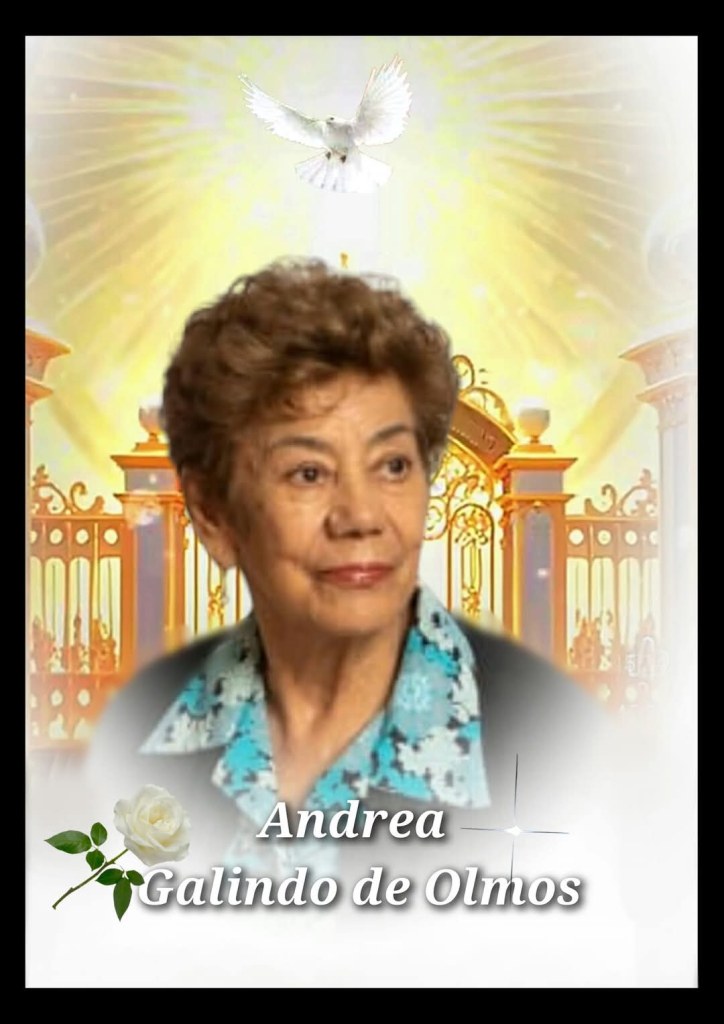 Con Profundo Pesar y Tristeza Participamos el Sensible Fallecimiento de la Sra. Andrea Galindo Viuda del Profr. Alfonso Olmos a la Edad de 83 Años en Alpine.