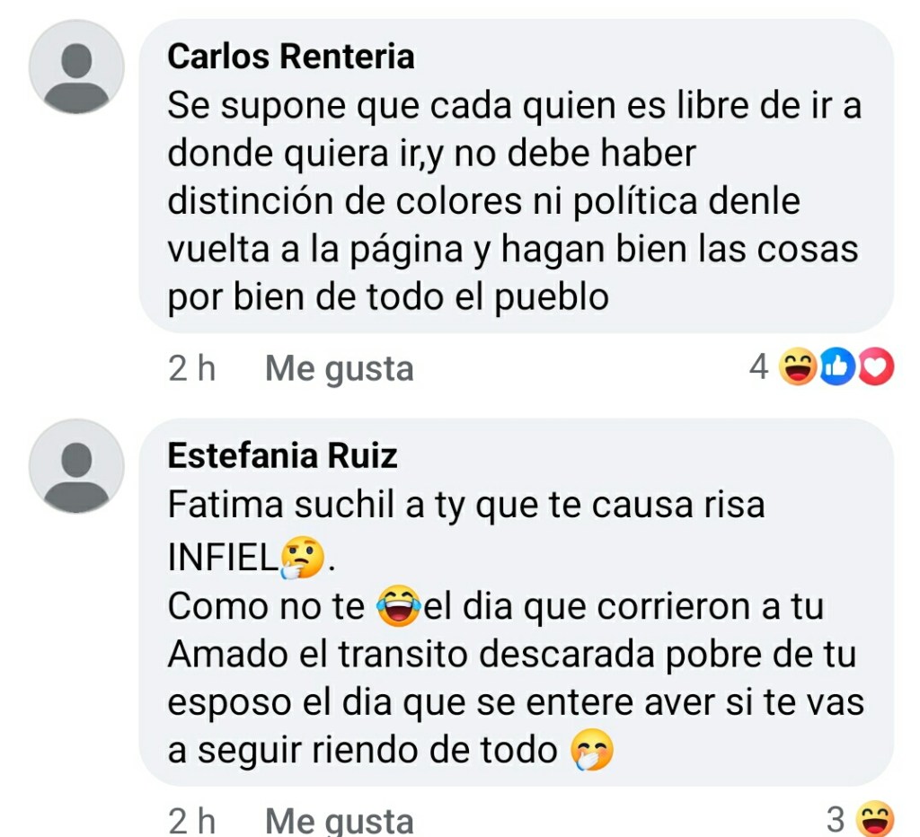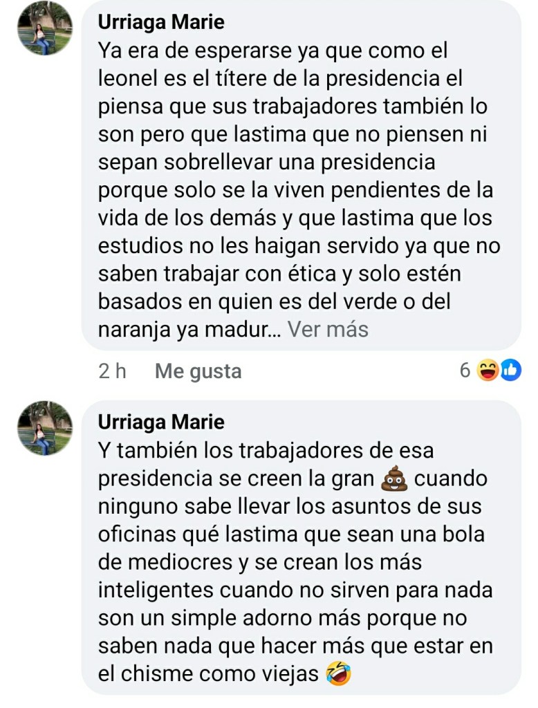 «Haber el presidente, que salga a aclarar por que está despidiendo gente que asistió a evento de posada.. cuando se paraba el cuello diciendo que no abría distinción de colores!! es una vergüenza para el pueblo lo que está haciendo, ojalá la gente abra los ojos!. después del horario laboral todos son libres de ir a donde se les plasca»!!