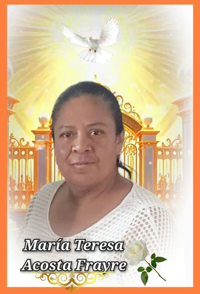 Con Profundo Pesar y Tristeza Participamos el Sensible Fallecimiento de la Sra. María Teresa Acosta Frayre el día de hoy a la Edad de 48 Años.