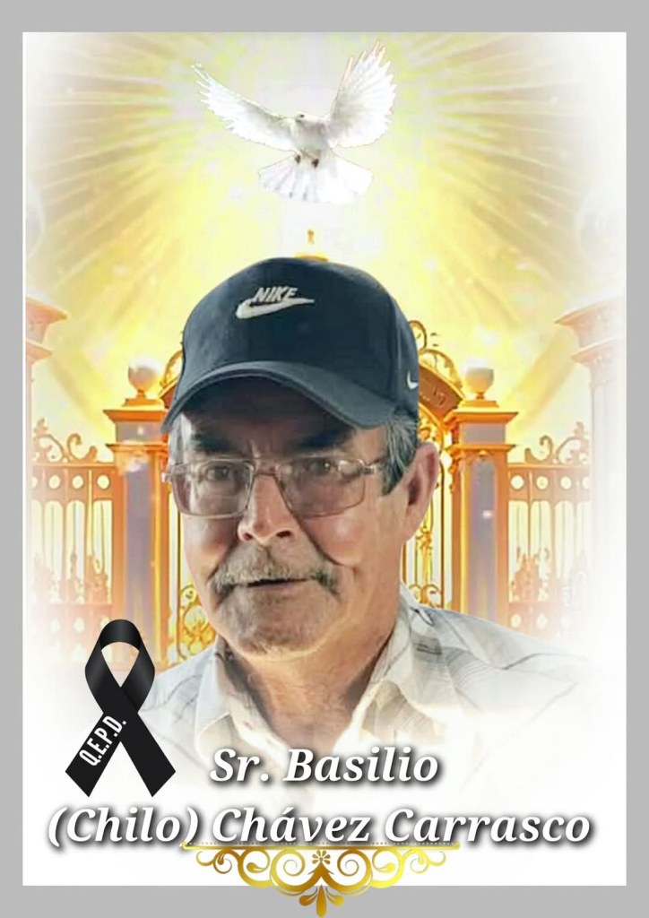 Con Profundo Pesar y Tristeza Participamos el Sensible Fallecimiento del Sr. Basilio (Chilo) Chávez Carrasco el día de hoy a la Edad de 74 Años. Después se Informará día y Hora de los Servicios.