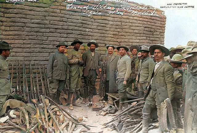 Después de la batalla de Ojinaga, en esta foto aparece el General Villa en enero de 1914 con armas abandonadas por los federales.