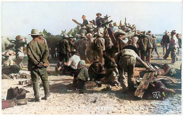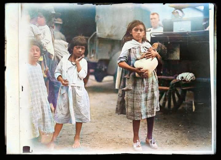 Refugiados durante la Revolución mexicana yendo a marfa Texas después de la batalla de Ojinaga que tuvo lugar un 10 de enero de 1914.
