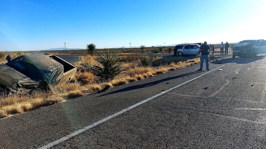 Esta tarde se registró un choque entre dos vehículos particulares a la altura de la comunidad el oasis sobre la carretera de cuota Ojinaga a Chihuahua.