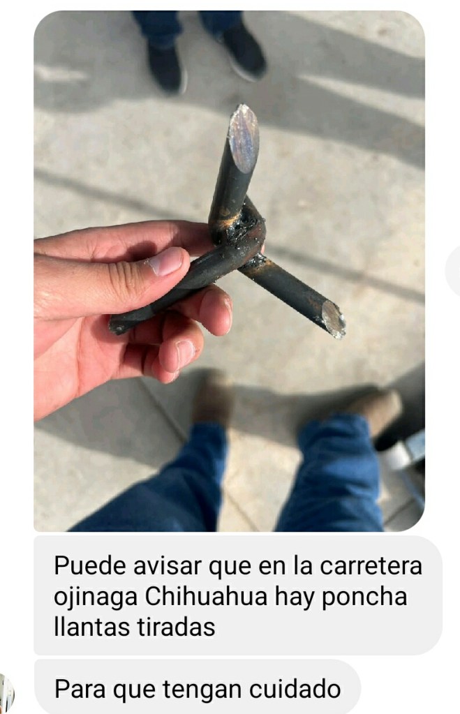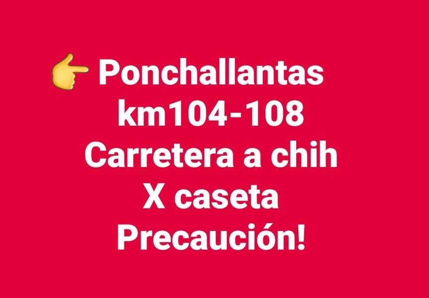 A través de las redes sociales se han estado reportando poncha llantas sobre la carretera de cuota Ojinaga a Chihuahua.