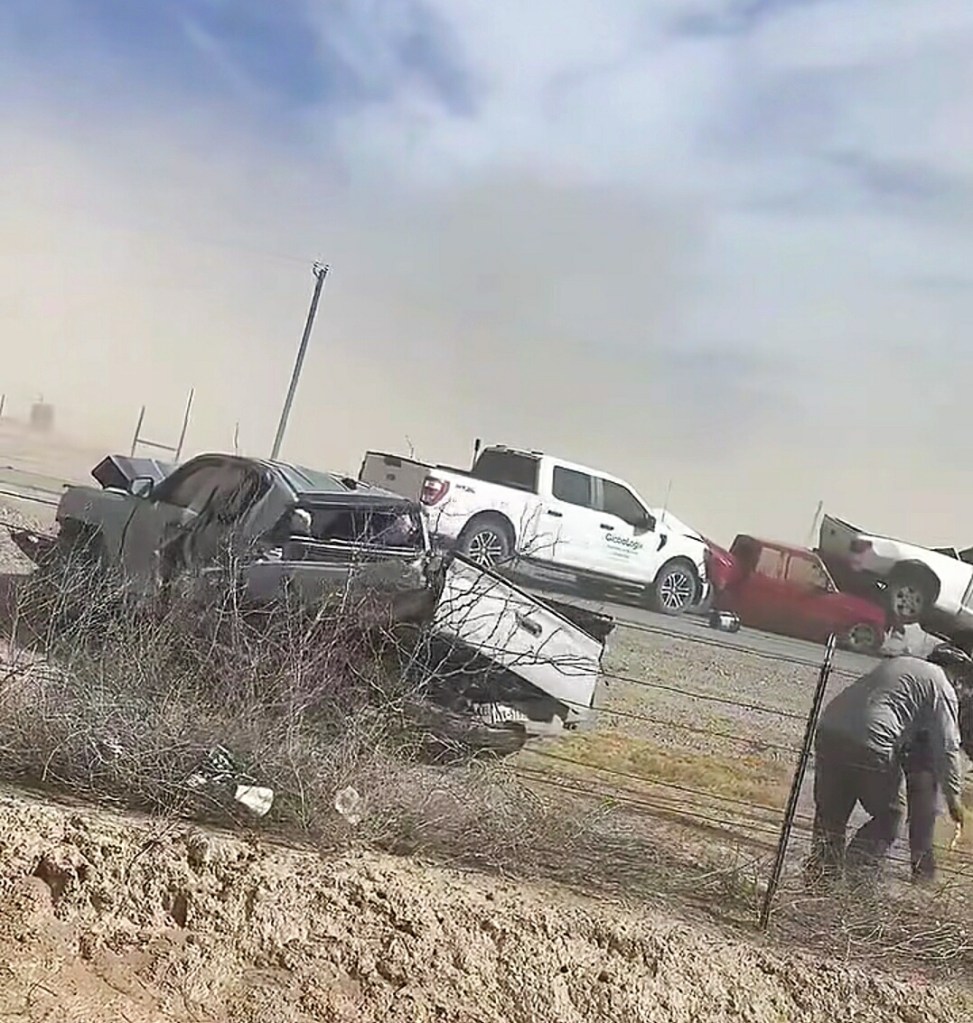 Esto sucedió esta tarde en Highway 285 cerca de Pecos, Texas. Se reportan lesionados.