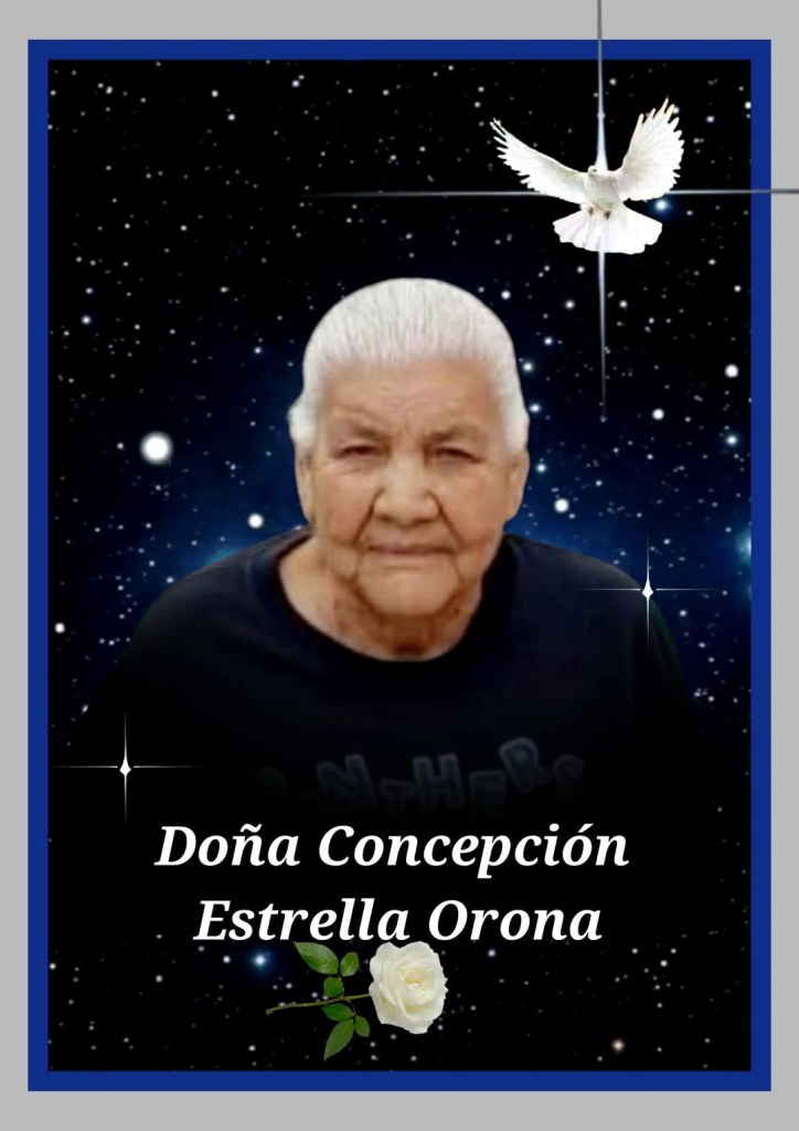 Con Profundo Pesar y Tristeza Participamos el Sensible Fallecimiento de Doña Concepción Estrella Orona el día de hoy en Ojinaga a la Edad de 85 Años. Después se Informará Donde Será la Capilla del Velacion, así como día y Hora de los Servicios Funerarios.