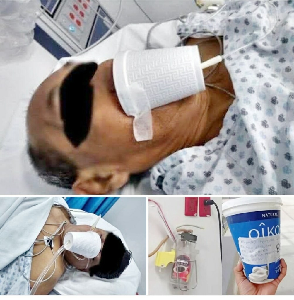 En otro caso, improvisaron una mascarilla de oxígeno con un vaso de unicel para realizar una traqueostomía.