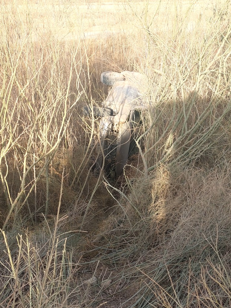 Cd. Ojinaga, Chih.- Ante el exceso de velocidad y en un tramo de curva, se registró la aparatosa volcadura de un vehículo en el dren de CONAGUA, cerca de Las Vegas, al salirse del camino que conduce a las comunidades de Tierras Nuevas, San Francisco y La Esmeralda.