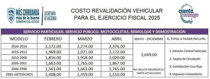 El secretario de Hacienda del Estado de Chihuahua, José Granillo, dio a conocer en conferencia de prensa los costos oficiales para la Revalidación Vehicular 2025.