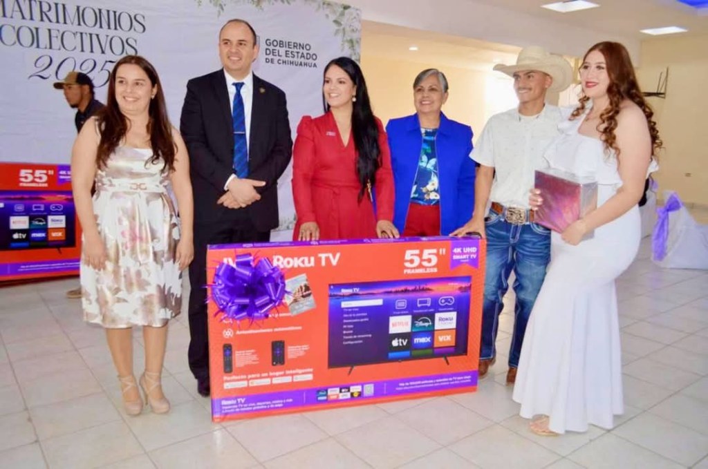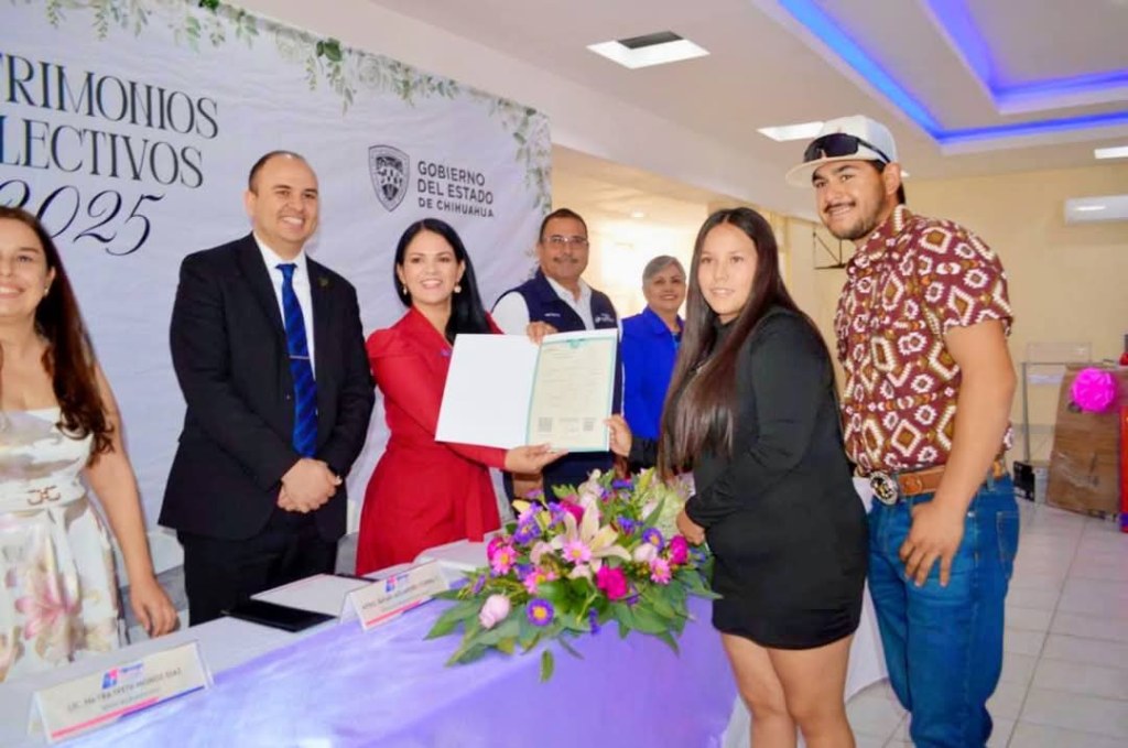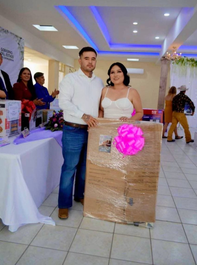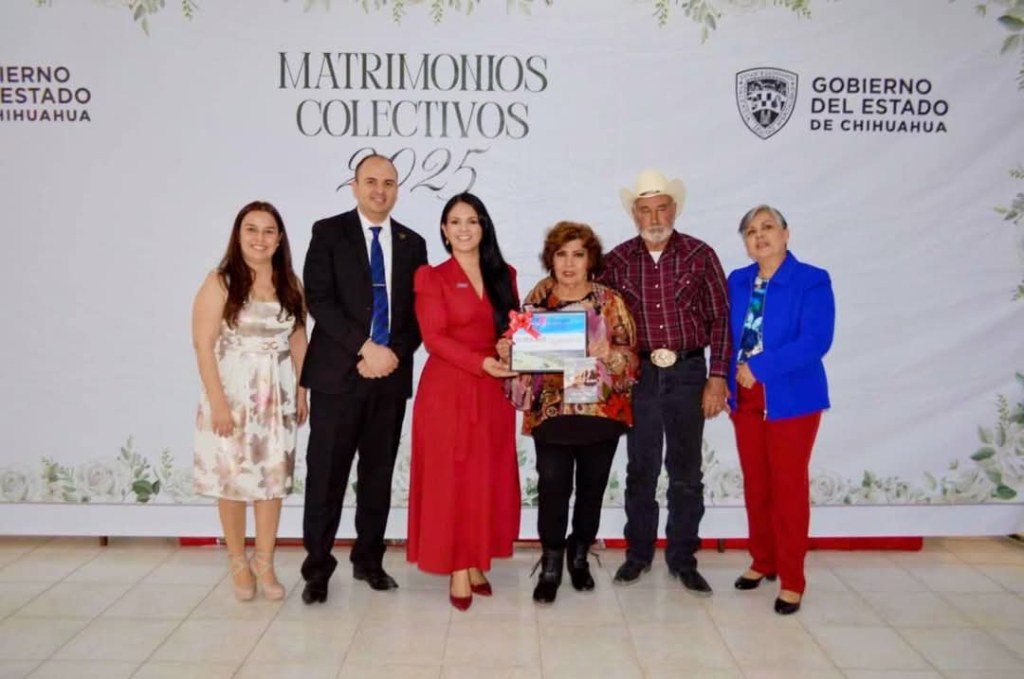 Este martes 18 de febrero se celebraron los Matrimonios Colectivos 2025, donde contrajeron matrimonio más de 38 parejas Ojinaguenses. Esta ceremonia celebrada por las oficinas del Registro Civil en el municipio tiene como finalidad brindar certeza jurídica a las parejas. Para engalanar está fecha tan importante Presidencia y DIF Municipal encabezados por la alcaldesa Lucy Marrufo y el Lic. Juan Carlos Valdivia al igual que Gobierno del Estado festejaron a las parejas con la rifa de decenas de regalos incluyendo un terreno municipal. Al final del evento los contrayentes disfrutaron de un delicioso refrigerio y el tradicional patel.