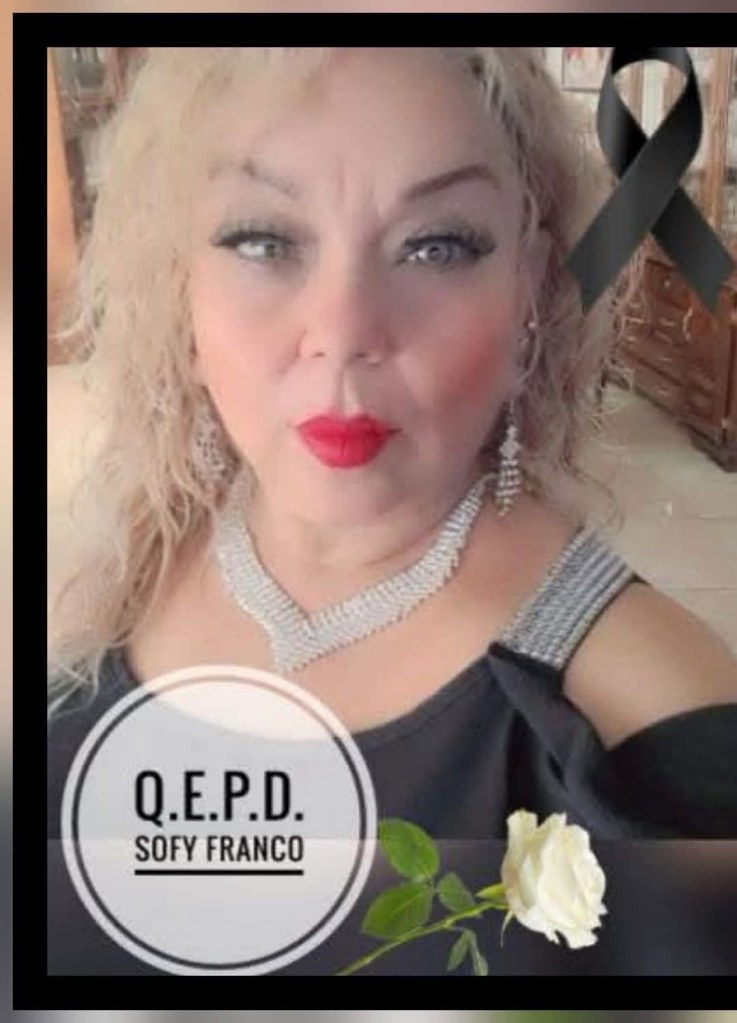 GENERAL,LOCAL,OBITUARIOS 🖤LAMENTAMOS COMUNICAR EL SENSIBLE FALLECIMIENTO DE LA SRA. SOFY FRANCO EL DIA DE HOY. Imagen 20 de febrero de 2025 mone1970 Deja un comentario CONDOLENCIAS PARA SU FAMILIA Y AMISTADES. Q.E.P.D. 🌎OJINAGANoticias/Obituarios Comparte esto: Compartir en X (Se abre en una ventana nueva) X Comparte en Facebook (Se abre en una ventana nueva) Facebook Compartir en WhatsApp (Se abre en una ventana nueva) WhatsApp Compartir en Threads (Se abre en una ventana nueva) Threads Compartir en X (Se abre en una ventana nueva) X Relacionado