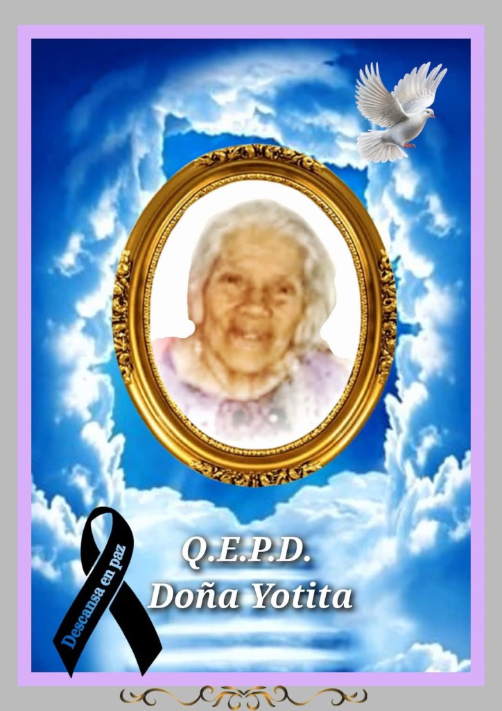 GENERAL,LOCAL,OBITUARIOS 🖤OBITUARIO POR DOÑA YOYITA. Imagen 28 de febrero de 2025 mone1970 Deja un comentario Condolencias Para su Familia y Amistades Q.E.P.D. 🌎OJINAGANoticias/Obituarios Comparte esto: Compartir en X (Se abre en una ventana nueva) X Comparte en Facebook (Se abre en una ventana nueva) Facebook Compartir en WhatsApp (Se abre en una ventana nueva) WhatsApp Compartir en Threads (Se abre en una ventana nueva) Threads Compartir en X (Se abre en una ventana nueva) X Relacionado