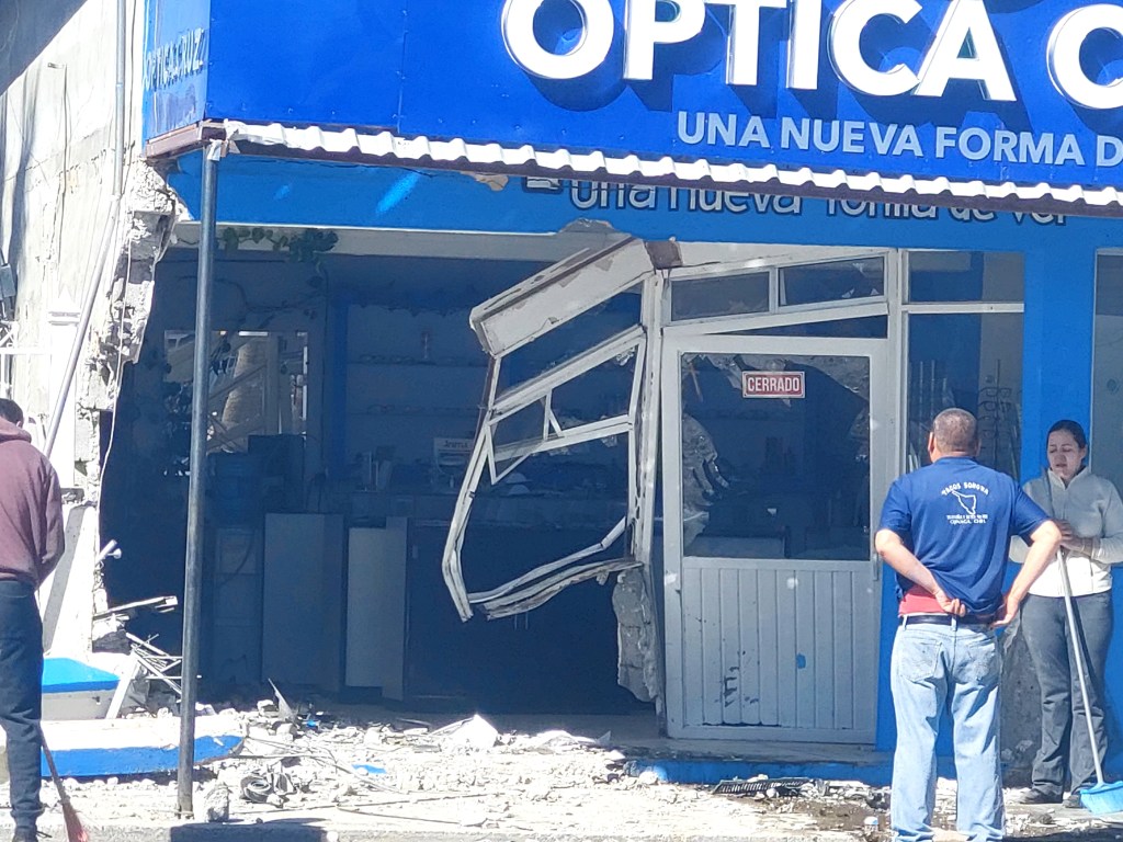 Erick H. de 19 años, se mete a la óptica con todo y vehículo.. amanecido y en estado de ebriedad.