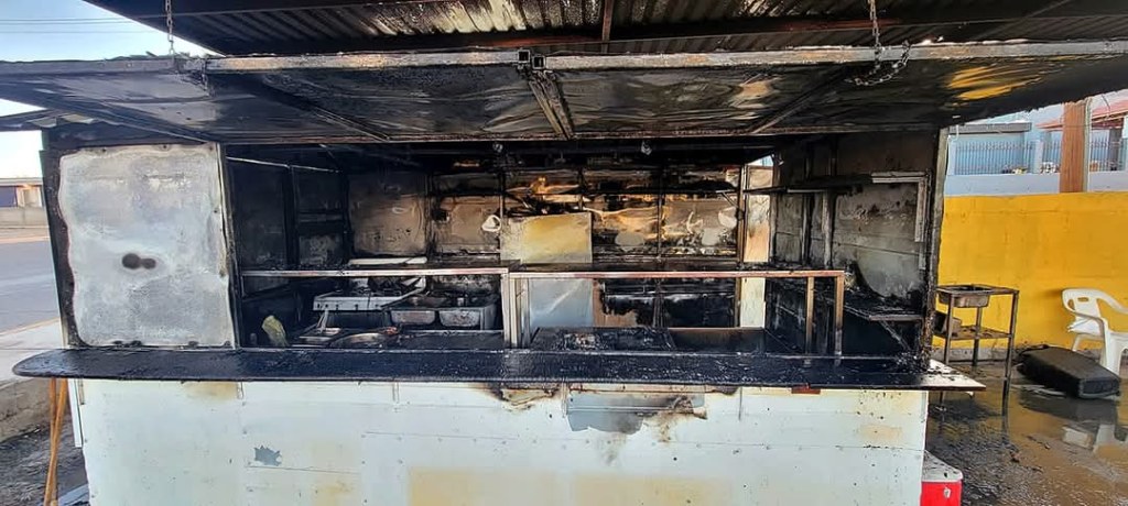 Esta tarde se registró un incendio en un puesto de comidas ubicado en la esquina de la calle Manuel Ojinaga y libre comercio.