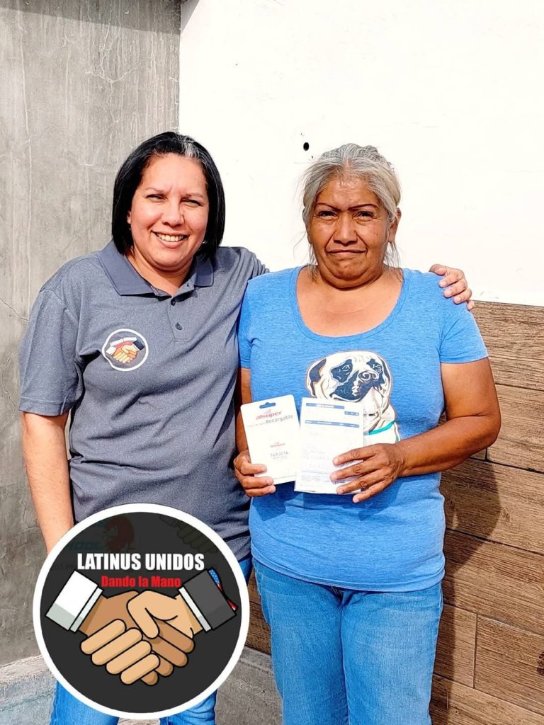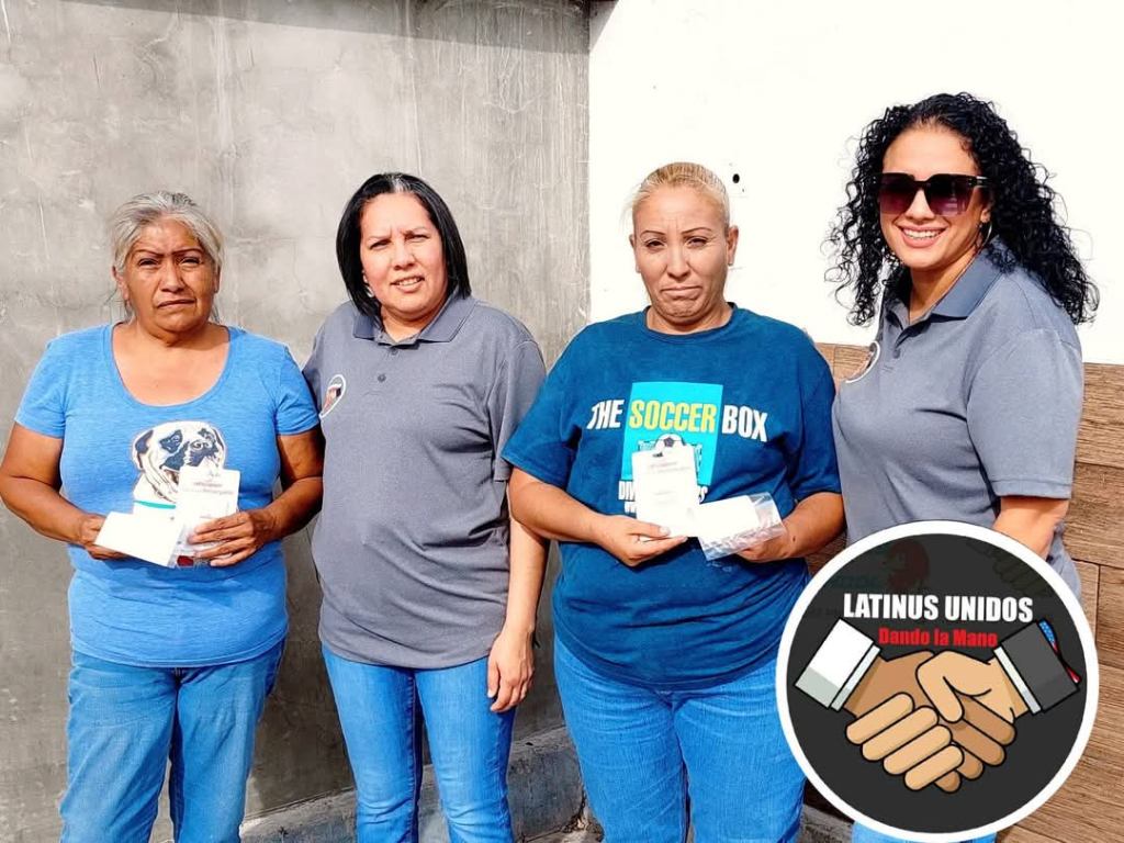 Latinus Unidos dando la mano es un grupo solidario que apoya cada mes a dos familias con despensas de alimentos para ayuda en su economía familiar y selecciona bajo un sorteo aquellas que son consideradas con más necesidad y que de preferencia cuentan con niños.