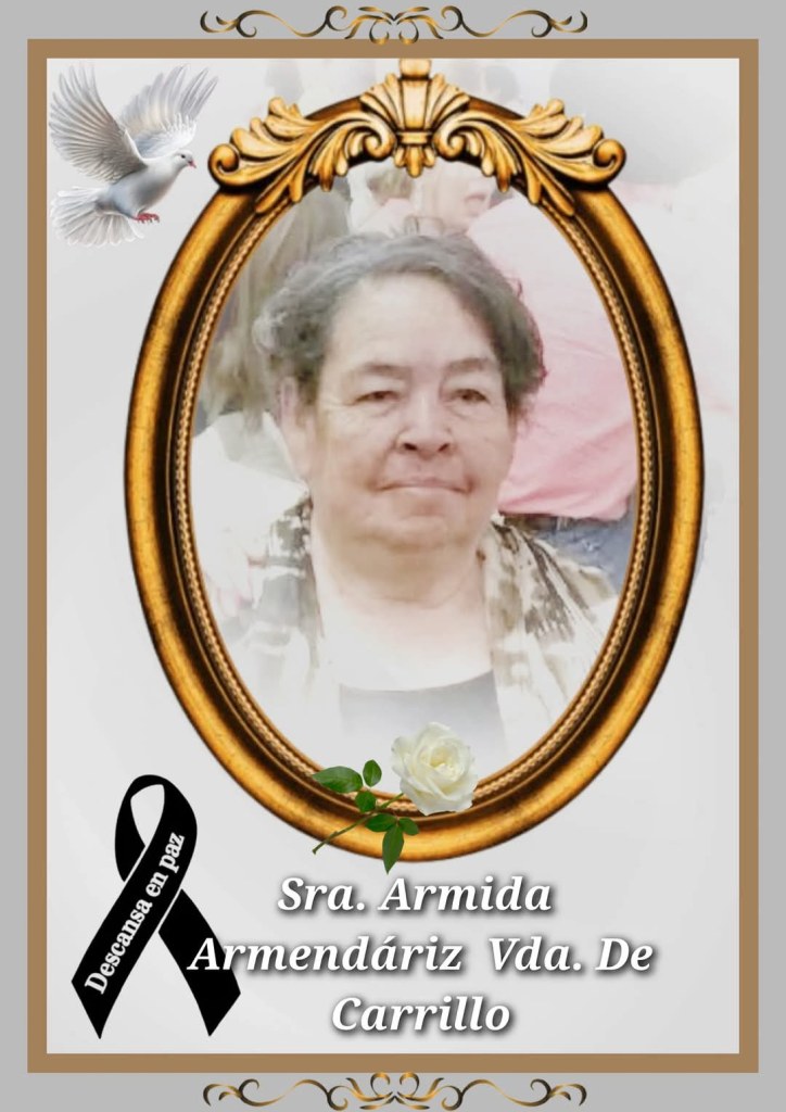 Con Profunda Pena y Tristeza Participamos el Sensible Fallecimiento de la Sra. Armida Armendáriz Viuda de Carrillo el día de hoy en Odessa a la Edad de 79 Años.