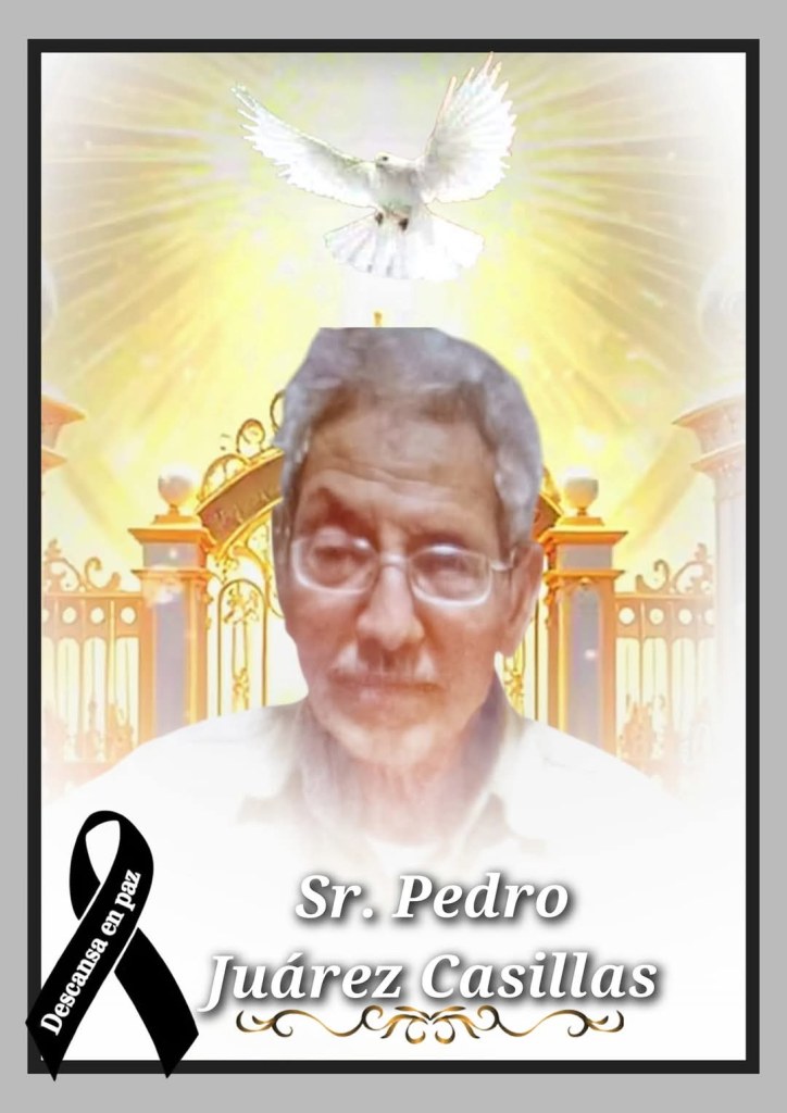 A familiares y amistades del Sr. Pedro Juárez Casillas se les comunica su sensible fallecimiento el día de hoy en Ojinaga a la edad de 74 años.