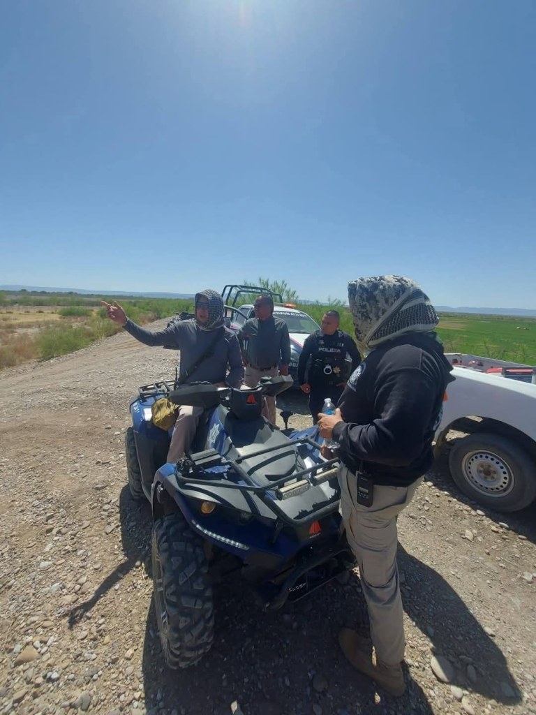 Elementos de bomberos protección civil y seguridad pública realizaron recorridos por las márgenes del Río conchos y del Río bravo para tratar de localizar al menor quién desde en la mañana no regresaba a su casa en la comunidad de la esmeralda.