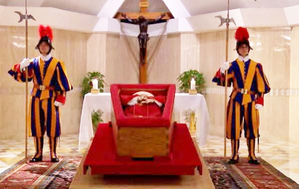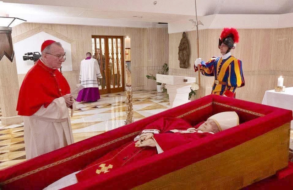 Su cuerpo reposa en la Capilla de Santa Marta, en un sencillo ataúd de madera, vestido con los símbolos de su ministerio. Una imagen que marca el inicio de su despedida.